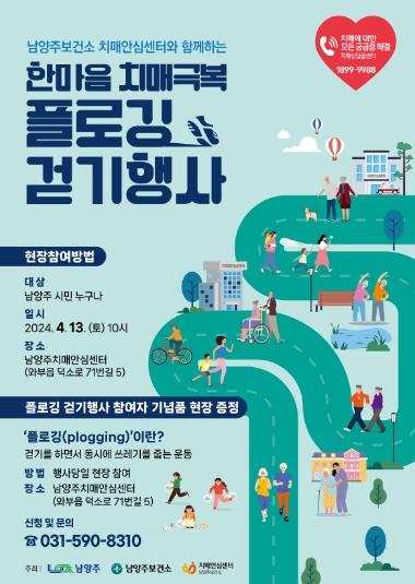 [한국뉴스타임=편집국] 남양주보건소 치매안심센터는 오는 4월 13일 지역 주민들을 대상으로‘한마음 치매 극복 플로깅 걷기 행사’를 실시한다.