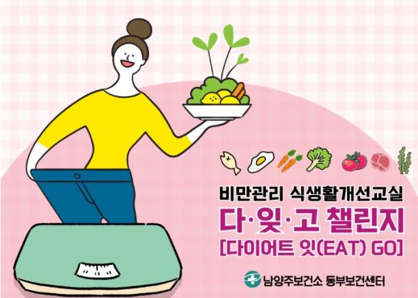 [한국뉴스타임=편집국] 남양주보건소 동부보건센터는 오는 18일부터 비만으로 인한 질환을 예방하기 위해 비대면 프로그램 ‘다·잊·고(다이어트 잇(EAT) GO) 챌린지’ 및 ‘탄탄고지(탄탄한 일상, 고민하지 말고 지금부터)’1기 프로그램을 운영한다.