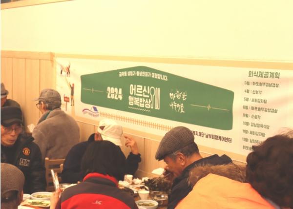 [한국뉴스타임=편집국] 남양주시 사회복지관 남부희망케어센터는 지난 12일 금곡동 상점가 총상인회와 함께 금곡동에 소재한 ‘마포솥뚜껑삼겹살’ 음식점에서 외식지원사업인 ‘어르신 행복밥상’을 진행했다.