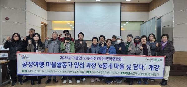 [한국뉴스타임=편집국] 포천시 이동면 도시재생현장지원센터는 15일부터 오는 5월 14일까지 매주 화요일 도시재생 대학 공정여행 마을활동가 양성 과정을 운영한다.