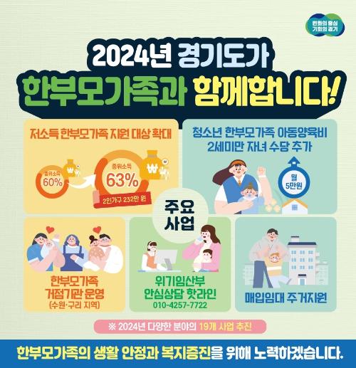 경기도는 이런 내용을 담은 ‘2024년 경기도 한부모가족 지원 추진계획’을 수립해 시행한다고 17일 밝혔다.