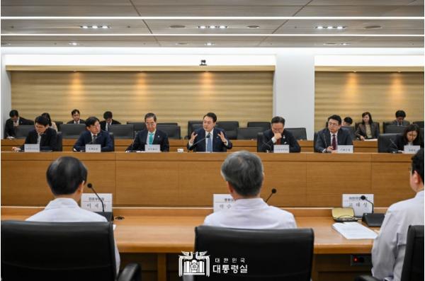 대통령은 또 "증원을 단계적으로 하자는 의견도 있지만, 오랜 시간에 걸쳐 단계적으로 이뤄졌다면 좋겠지만 정치적 리스크 때문에 역대 정부들이 엄두를 내지 못해 너무 늦어버렸다"며 "매번 이런 진통을 겪을 수는 없지 않겠느냐"고 설득했다. 대통령은 “의사들께서 걱정하시는 것처럼 의료 질 저하는 발생하지 않도록 할 것”이라며 “의료개혁 완수를 위해 어떤 부분이 부족하고 개선이 필요한지 현장을 가장 잘 아는 의사와 간호사 여러분들께서 의견을 주셔야 한다. 정부를 믿고 대화에 나와 달라”고 당부했다.