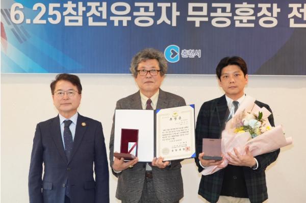 육동한 춘천시장이 18일 오후 4시 30분 6.25전쟁 참전유공자인 고(故)정일모 일병의 자녀인 정세현씨에게 화랑무공훈장을 전수했다.
