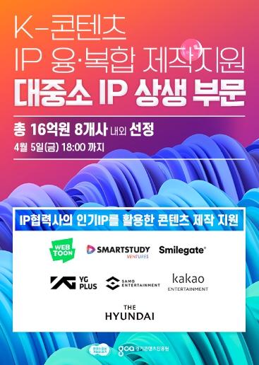 ‘K-콘텐츠 지식재산권(IP) 융복합 제작 지원’ 사업은 경기도가 예산을 지원하고 실력 있는 중소 제작업체가 우수 K-콘텐츠를 제작해 부가가치를 창출하는 사업이다.