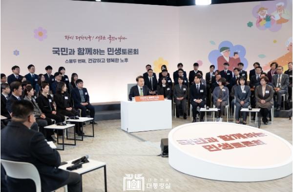 [한국뉴스타임=편집국] 윤석열 대통령은 3월 21일 강원특별자치도 원주시 건강보험심사평가원에서 ‘건강하고 행복한 노후’를 주제로 스물두 번째 '국민과 함께하는 민생토론'를 개최했다. 이번 토론회는 주거, 식사, 의료, 돌봄 등 어르신의 삶과 밀접한 정책 과제를 논의하기 위해 마련됐다.