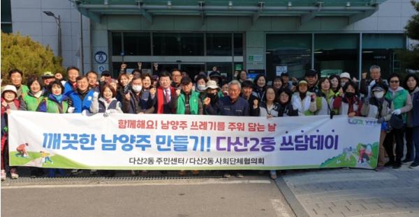 [한국뉴스타임=편집국] 남양주시 다산2동 주민센터는 21일 다산2동 사회단체협의회 회원 80여 명과 함께 왕숙천 시민공원을 비롯한 다산2동의 환경취약 지역을 대상으로 ‘다산2동 쓰담데이’활동을 대대적으로 실시했다.