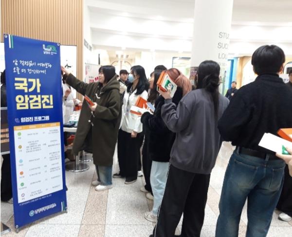 [한국뉴스타임=편집국] 남양주풍양보건소는 지난 20일 경복대학교 남양주캠퍼스에서 국가암검진 수검을 독려하기 위해 국가암검진사업 홍보를 실시했다.