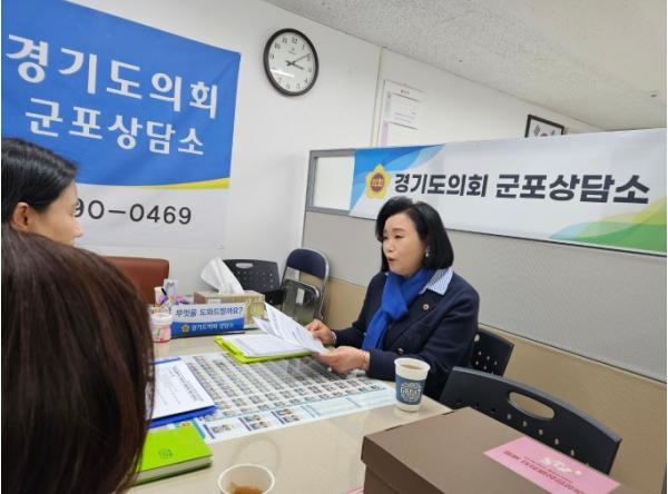 [한국뉴스타임=편집국] 경기도의회 정윤경 의원(더불어민주당, 군포1)은 지난 22일 경기도의회 군포상담소에서 경기도 여성비전센터 여성안심사업팀 박지일 팀장, 여성비전센터 김미숙 소장 등 관계자들과 여성안심패키지 보급 지원 적정가격 재설정 관련사항에 대해 보고받는 자리를 가졌다.