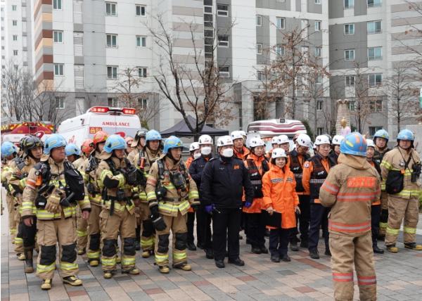 훈련은 아파트 11층 내부에 원인미상의 화재가 발생했다는 상황을 가정하여 5단계 절차에 따라 진행됐다. 단계별 내용은 ▲신고 접수 및 전파 ▲긴급구조지휘대 활동 ▲통제단 가동 ▲통제단 운영 ▲지휘권 이양 순으로 임무를 점검했다고 전해진다.