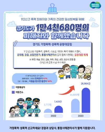 경기도는 도내 8곳의 ‘가정폭력·성폭력공동대응팀(가칭)’이 지난해 1만 4천680명에게 심리상담, 의료·법률 등 2만 6천964건을 지원했다고 26일 밝혔다.