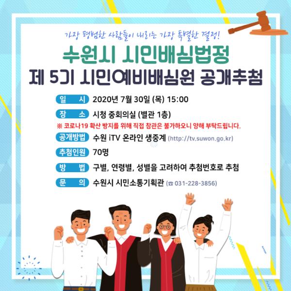 수원시는 30일 오후 3시 iTV 홈페이지(http://tv.suwon.go.kr/)를 통해 예비배심원단 70명의 공개추첨 과정을 생중계했다.