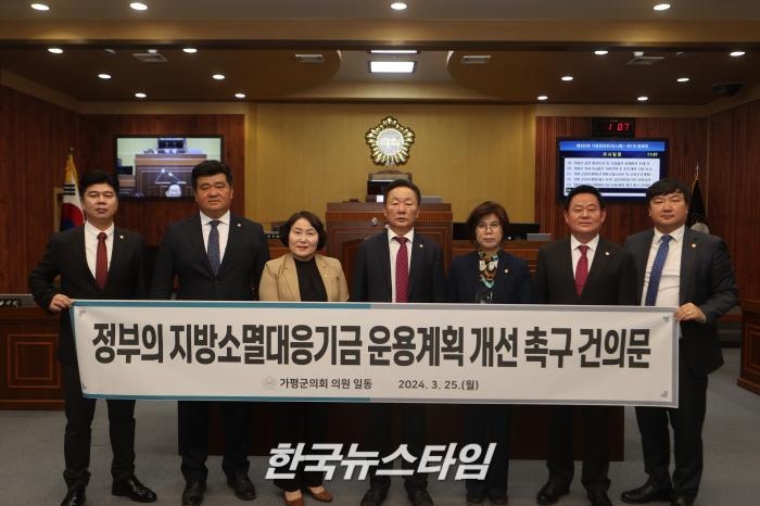 또한, 가평군의회는 정부의 지방소멸대응기금에 대한 지방자치단체의 자율적이고 주도적인 사업추진 보장 요구와 평가 방식 개선을 건의하는 ▲「정부의 지방소멸대응기금 운용계획 개선 촉구 건의문」(김경수 의원 대표발의)을 채택하였다.
