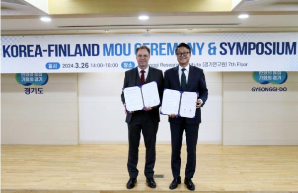 [한국뉴스타임=편집국] 경기연구원은 26일 경기연구원 7층 대회의실에서 헬싱키대학교 사회과학대학과 업무협약(MOU) 및 기념 학술 토론회(심포지엄)를 개최했다.