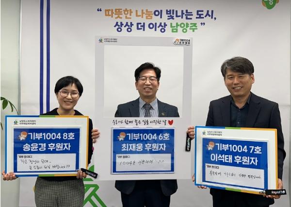 [한국뉴스타임=편집국] 남양주시는 지난 25일 시청 복지국 소속 직원들이 나눔 문화 확산을 위한 ‘기부1004 프로젝트’ 캠페인에 동참했다고 26일 밝혔다.