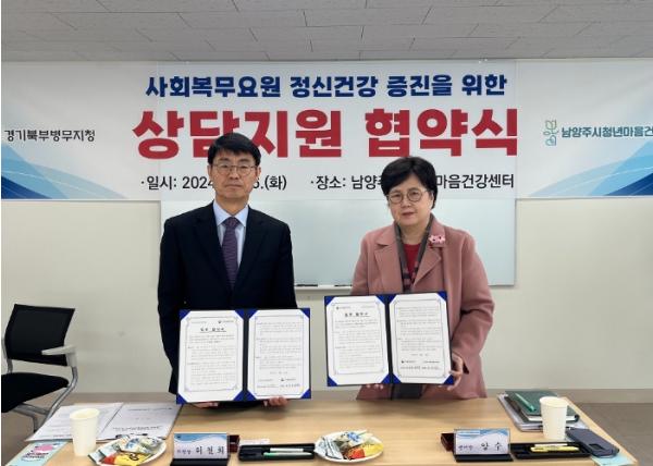 [한국뉴스타임=편집국] 남양주시정신건강복지센터의 부설 기관인 청년마음건강센터는 지난 26일 경기북부병무지청과 사회복무요원 정신건강 증진을 위한 상담 지원 업무협약을 체결했다.