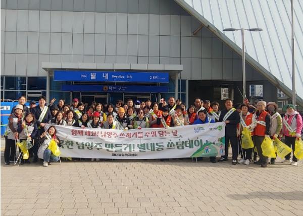 [한국뉴스타임=편집국] 남양주시 별내행정복지센터는 다가오는 별내선 개통을 맞아 지난 26일 별내역 일대에서‘별내동 쓰담데이(쓰레기를 주워담는 날)’를 추진했다.