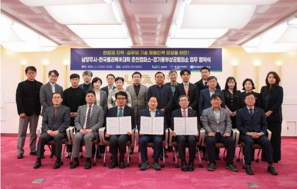 [한국뉴스타임=편집국] 남양주시는 27일 시청 여유당에서 한국폴리텍Ⅲ대학 춘천캠퍼스(학장 이덕수) 및 경기동부상공회의소(회장 문한경)와 함께 현장 실무중심의 지역 맞춤 인력 양성을 위해 업무협약을 체결했다고 밝혔다.