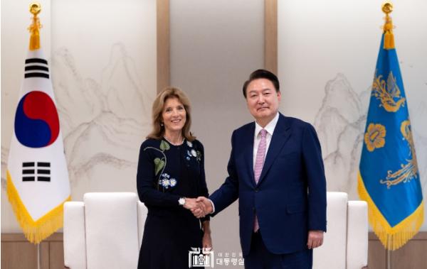 [한국뉴스타임=편집국] 윤석열 대통령은 3월 27일 오후 캐롤라인 케네디 미국 존 F. 케네디 재단(이하 JFK 재단) 명예회장(現 주호주 미국대사)을 접견했다.