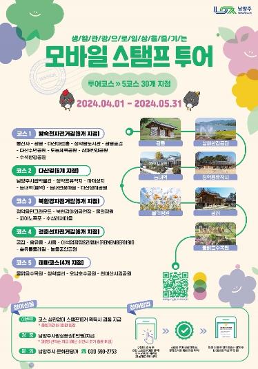 [한국뉴스타임=편집국] 남양주시는 다가오는 봄을 맞아 4월 1일부터 5월 31일까지 관광객을 대상으로 상반기 모바일 스탬프 투어를 운영한다고 28일 밝혔다.