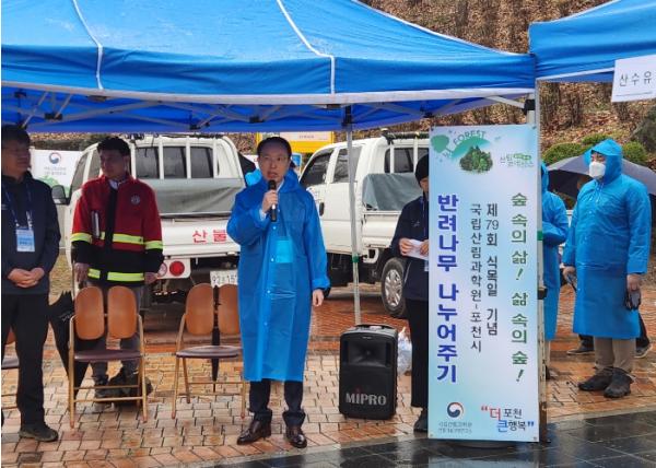 이현호 포천시 부시장은 “이번 행사를 통해 받은 나무를 잘 심고 가꿔주시길 바라며, 산불 사전 예방에도 적극적으로 앞장서주시길 바란다”고 밝혔다.