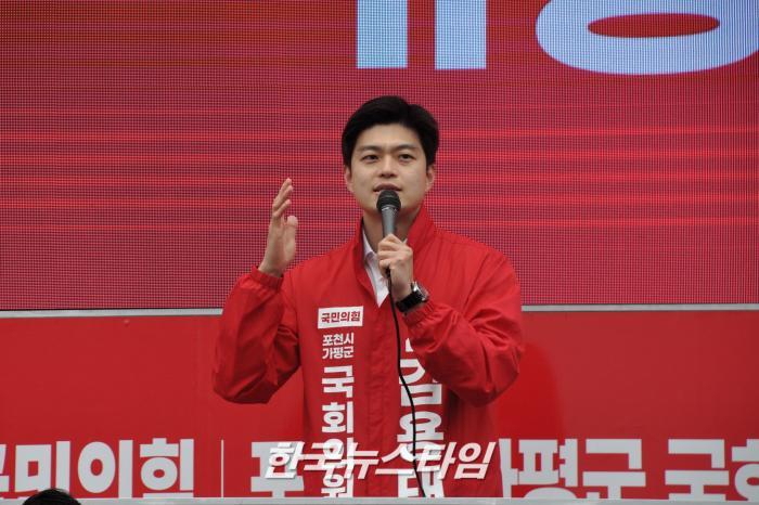 김용태 후보는 “나를 국민의힘 국회의원 후보로 만든 것은 포천시민과 가평군민들"이라며 "권력의 눈치를 보지않고 포천시민과 가평군민의 목소리를 대변하겠다”고 출정식 포문을 열었다.