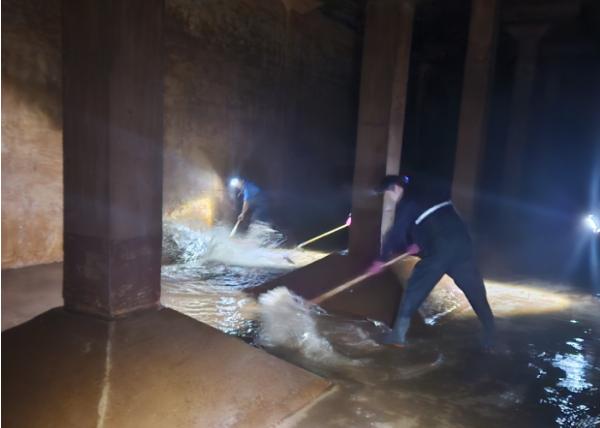 시는 수도법 제33조(위생상의 조치)에 따라 매년 상·하반기 배수지 청소를 실시하고 있으며, 시민들에게 안전하고 깨끗한 용수를 공급하기 위해 배수지 내부 벽면에 붙어있는 물때와 바닥 침전물을 고압수로 제거한다.