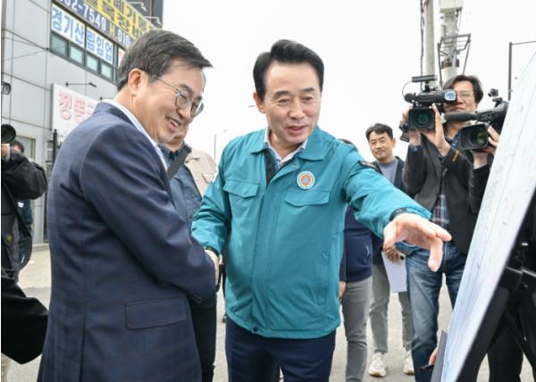 [한국뉴스타임=편집국] 백영현 포천시장은 지난 4일 김동연 경기도지사와 함께 올해 말 착공 예정인 전철 7호선 옥정-포천 광역철도 소흘정거장 예정지 현장을 방문했다.
