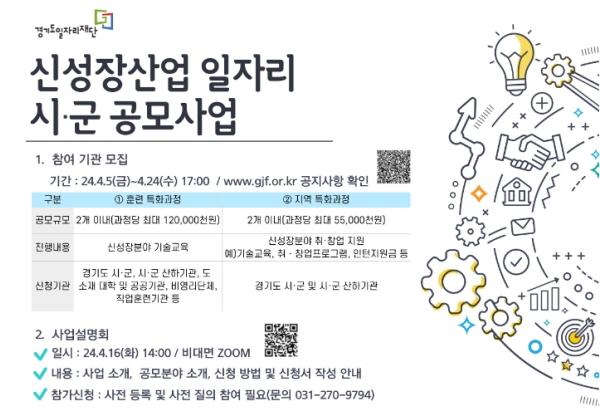 공모 관련 자세한 사항 확인 또는 설명회 참여 신청은 경기도일자리재단 누리집을 통해 확인하거나 경기도일자리재단 남부교육팀으로 전화문의 가능하다.