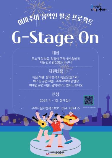 한편, ‘G-Stage On’은 4월부터 12월까지 상시 접수하고 있으며, 주소지 및 학교, 직장이 구리시이고 음악을 사랑하는 시민이라면 누구나 참여 신청이 가능하다.
