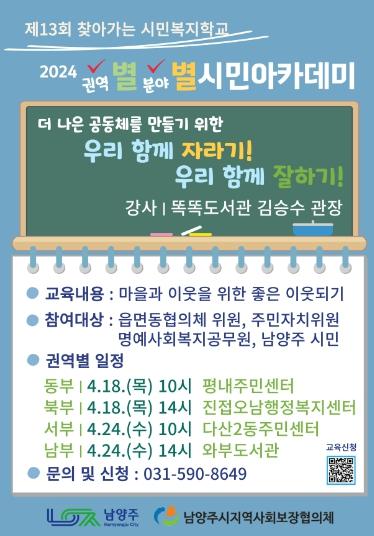 [한국뉴스타임=편집국] 남양주시지역사회보장협의체는 4월부터 9월까지 찾아가는 시민복지학교 『별별시민아카데미』를 운영한다.