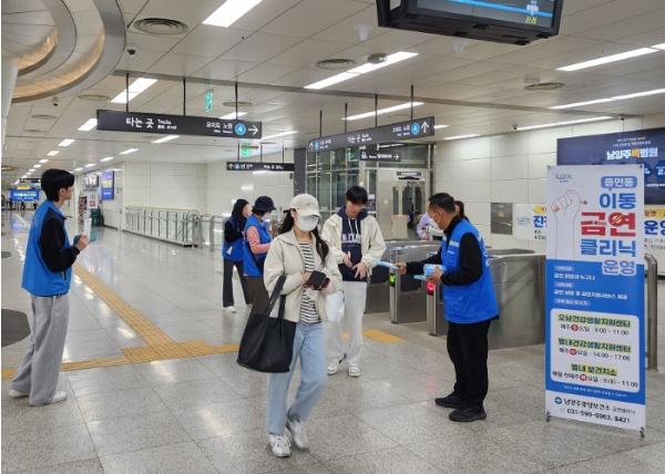 [한국뉴스타임=편집국] 남양주풍양보건소는 지난 11일 ‘전철역 출입구 10미터 이내’신설 금연구역을 홍보하고, 간접흡연제로 금연 환경을 조성하기 위해 진접역에서 금연 캠페인을 실시했다.