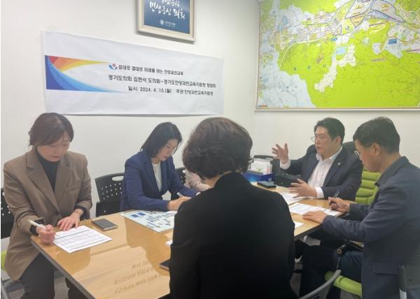 [한국뉴스타임=편집국] 경기도의회 교육행정위원회 김현석 의원(국민의힘, 과천)은 15일 경기도의회 과천상담소에서 안양과천교육지원청 이승희 교육장을 비롯한 이승호 행정국장, 한혜주 교육국장 등 안양과천교육지원청 관계자들과 과천 교육 현안에 대한 정담회를 가졌다.