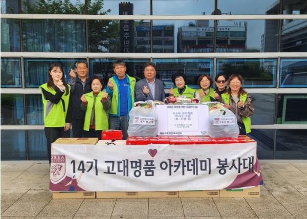 [한국뉴스타임=편집국] 고대 명품 아카데미 14기 봉사대는 16일 관내 취약계층 20가구에 후원 물품을 전달했다.