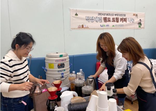 이날 행사에는 장애인 자녀를 둔 어머니로 구성된 바리스타 자조 모임이 드립커피, 매실차 나눔 카페테리아를 운영하고, 캘리그라피 자조 모임이 켈리그라피 방향제 만들기 체험을 운영하여 풍성함과 즐거움을 더했다.