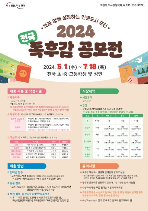 포천시 관계자는 “전국의 초·중·고등학생과 성인을 대상으로 진행하는 이번 독후감 공모전을 통해