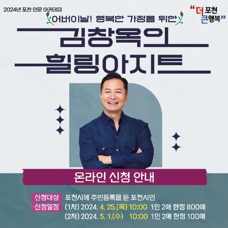 [한국뉴스타임=편집국] 포천시는 오는 4월 25일과 5월 1일 '김창옥의 힐링아지트' 인문학 콘서트 신청 재접수를 진행한다.