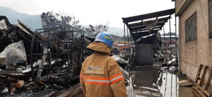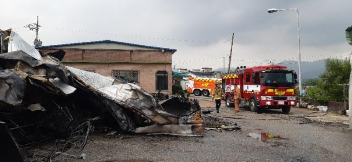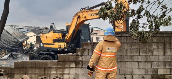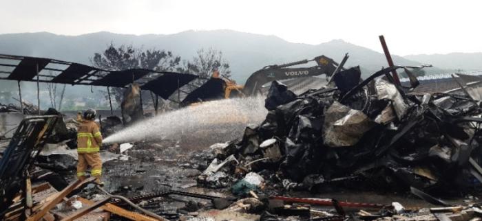화재신고를 접수한 포천소방서 (서장 한동복)는 소방차 20여대를 출동시켜 2시간여만에 진화되었다. 건물소재가 압축스티로폼으로 소방당국은 포크레인 2대를 동원하여 건물을 철거하면서 잔불 정리를 하고 있다.