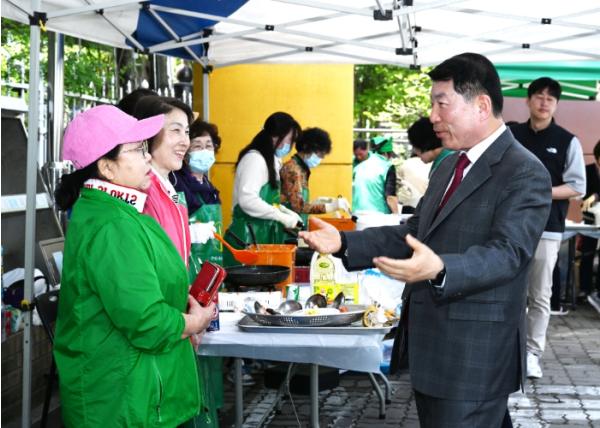 이날 바자회에는 교문2동 새마을회 회원 35명과 교문2동 주민자치위원회, 통장협의회 등 관내 기간단체 회원들이 함께 참여했으며, 정성스럽게 준비한 음식을 지역 주민들에게 대접하고, 이웃돕기 성금 마련을 위한 김치, 멸치볶음 등 먹거리 및 물품 판매도 같이 진행했다.