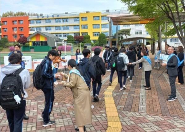 [한국뉴스타임=편집국] 경기도교육청이 22일 오전, 고양시 원당중학교에서 도박예방·근절을 위한 노박(No박) 캠페인을 펼쳤다.