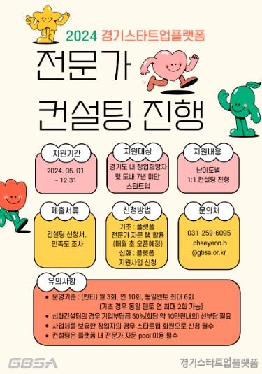 1:1 전문가 컨설팅 프로그램에 참여를 희망하는 도내 창업 희망자 및 7년 미만 스타트업(공고일 기준)은 경기도 스타트업플랫폼을 통해 신청할 수 있다. 사업은 예산 소진시까지 신청 가능하다.