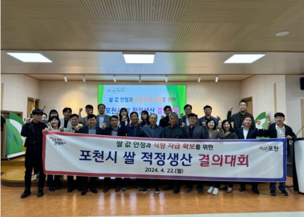 [한국뉴스타임=편집국] 포천시는 지난 22일 포천시농업기술센터 대강당에서 쌀 수급 과잉 해소 및 식량작물 자급률 제고를 위해 2024년 쌀 적정생산 결의대회를 추진했다.