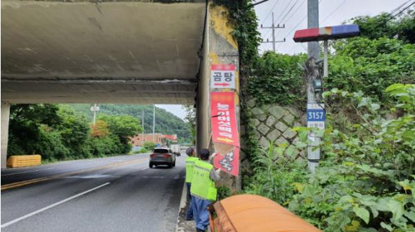[KNT한국뉴스타임] 포천시 내촌면(면장 강성모)은 7월 30일 내촌면 도로변 및 시가지에 불법으로 설치된 광고물과 현수막을 정비했다.