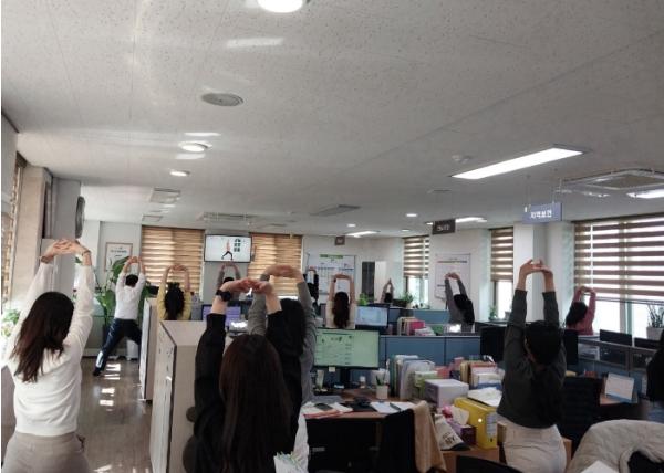이번 프로그램은 시민 건강을 책임지는 보건소 직원들이 규칙적으로 운동할 수 있는 시간을 확보하여 직원들의 집중력과 업무 효율성을 향상시키고, 나아가 장시간 앉아있는 업무로 인한 근골격계 질환을 예방하기 위해 마련됐다.