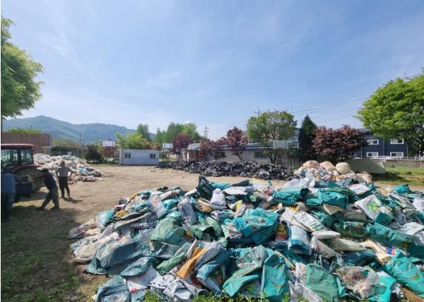 이날 활동에는 군내면 이장협의회와 22개 리 마을 주민이 함께해 농경지에 방치된 폐비닐, 비료 포대 등 약 10톤 가량의 영농폐기물을 수거했다.