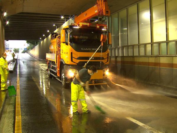화산지하차도 침수로 인해 차량 1대가 침수돼 견인 조치했고, 인명피해는 없었다.