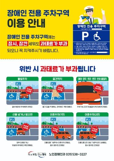 시 관계자는 “앞으로도 지속적인 홍보와 계도, 단속으로 장애인 전용 주차구역의 불법주차 행위를 예방하고 장애인의 이동 편의를 확보하는 등 올바른 주차 문화를 조성하기 위해 힘쓰겠다”고 말했다.
