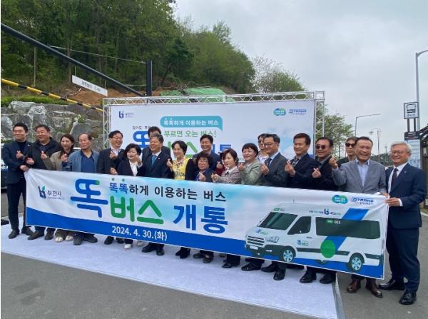 경기교통공사는 25일 부천시 고강본동 일대에서 조용익 부천시장, 민경선 경기교통공사 사장을 비롯해 서영석 국회의원(부천시 정), 시민 등 50여 명이 참석한 가운데 ‘똑버스’ 시승 행사를 가졌다.