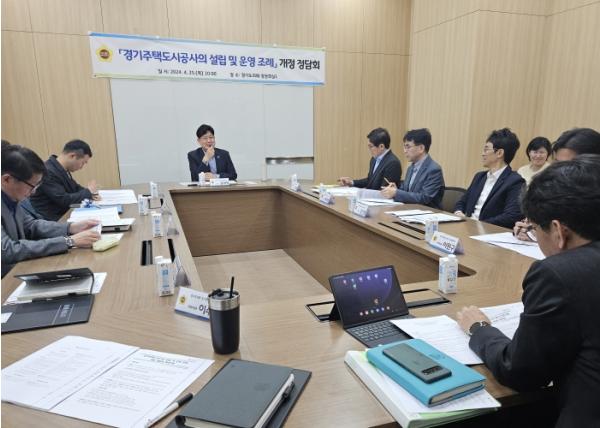 [한국뉴스타임=편집국] 경기도의회 도시환경위원회 김태형 의원(더불어민주당, 화성5)이 25일 경기도의회 정담회실에서 '경기주택도시공사의 설립 및 운영 조례' 개정을 위한 정담회를 개최했다.
