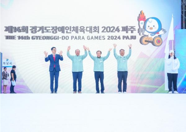 [한국뉴스타임=편집국] 포천시의회는 지난 25일, 파주시 임진각 평화누리에서 열린 ‘제14회 경기도장애인체육대회’개회식에 참석해 포천시 대표 선수단을 격려했다.