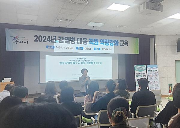 [한국뉴스타임=편집국] 구리시는 지난 26일 보건소 대강당에서 보건소 전 직원을 대상으로 ‘2024년 감염병 대응 역량강화 교육’을 실시했다.
